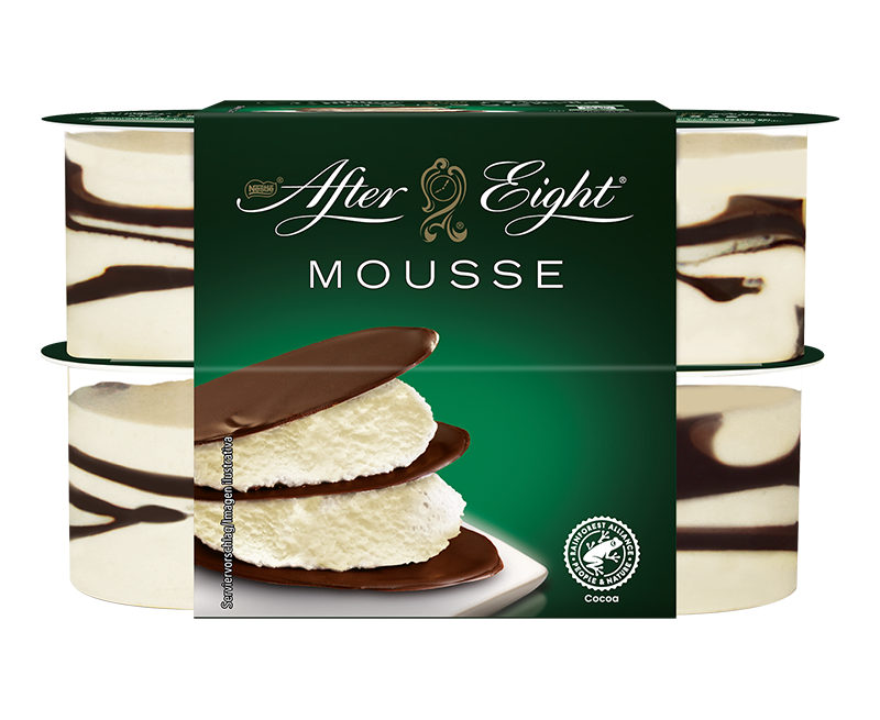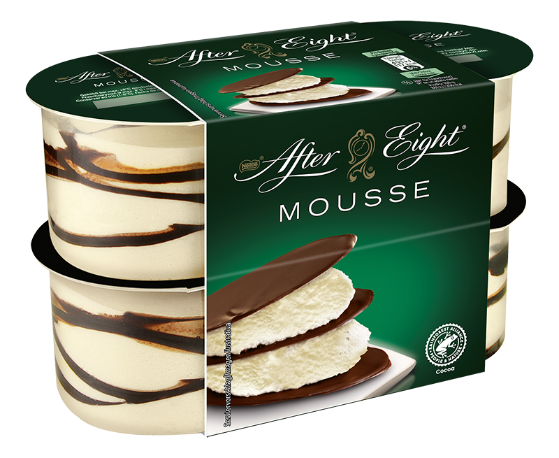 Feine Minzcreme, umschmeichelt von hauchdünnen, knackigen Kakaoschichten – die AFTER EIGHT® Mousse ist ein Dessert wie ein eleganter Abend in London. Jede Portion vereint das unverwechselbare AFTER EIGHT®-Frischegefühl mit zartschmelzendem Genuss, der auf der Zunge verweilt.